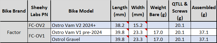 This mount allows you to rigidly attach your Garmin Varia RCT715/716 (the bigger one with the camera) to your bike's seat post. Please select your Factor bike model from the list and then decide if you want to add the QTLL or not.